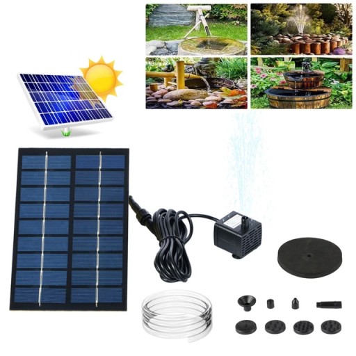 СОЛНЕЧНЫЙ ПРУД ФОНТАН ФОНТАННЫЙ НАСОС СОЛНЕЧНАЯ ПАНЕЛЬ + 8 НАСАДОК 2,5 Вт