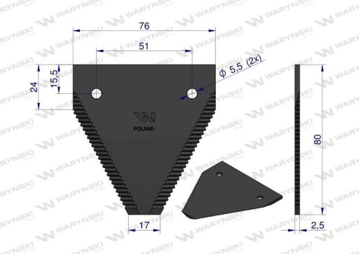 Нож, лезвие ножевого бруска Bizon 506000001, зубчатое снизу WARYŃSKI ( sp