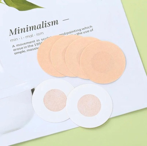 Wykonane z bezpiecznego dla skóry materiału i kleju. Nie podrażniają, nie zostawiają śladów. Takich same naklejki dołączane są do taśmy do biustu w celu zabezpieczenia brodawek. Nie zawierają lateksu, dzięki czemu są całkowicie bezpieczne dla delikatnej skóry.
