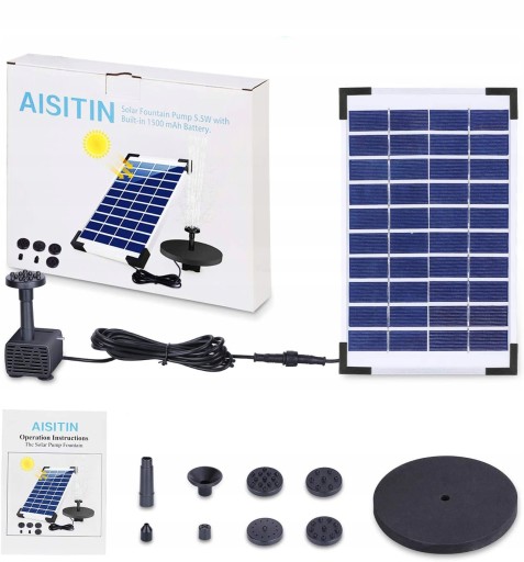 FONTANNA SOLARNA OGRODOWA POMPA FONTANNOWA DO OCZKA WODNEGO +6 DYSZA
