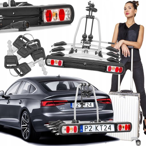 ZAMYKANY BAGAŻNIK PLATFORMA UCHWYT ROWEROWY NA HAK 4 ROWERY UCHYŁ 13PIN