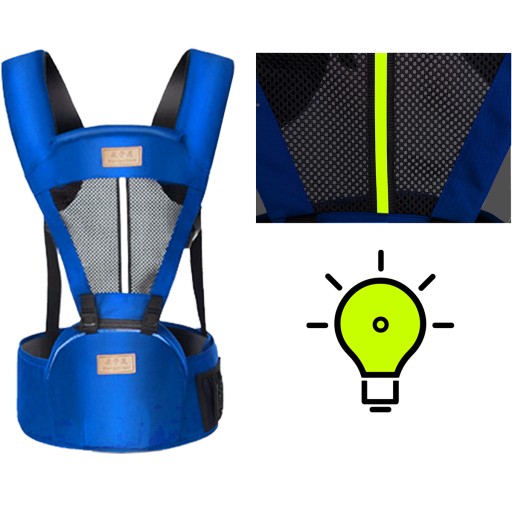 Nosidełko zaopatrzone jest w odblask z przodu, który poprawi bezpieczeństwo każdego użytkownika drogi/chodnika. Nie widzialny w świetle dziennym. Efekt odblaskowy widoczny tylko w kontakcie ze światłem zewnętrznym: