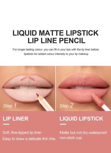 Набор из 12 ярких жидких помад и карандашей для губ.