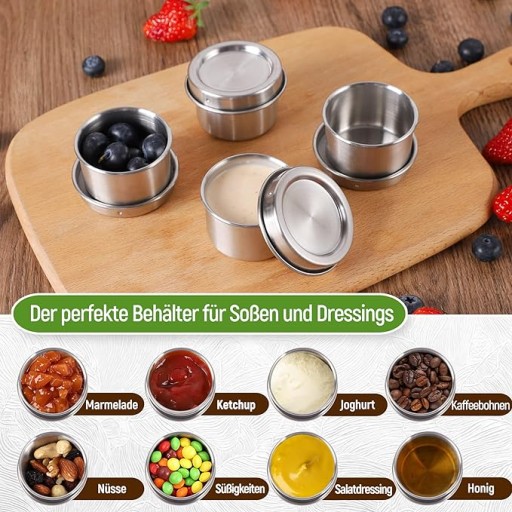 - Kompaktowy rozmiar jest idealny do podróży, nie tylko do przechowywania sosów i dipów, ale także do małych rzeczy, takich jak słodycze, tabletki, orzechy itp., ponieważ jest całkowicie uszczelniony i nie musisz się martwić o wycieki lub wilgoć.
