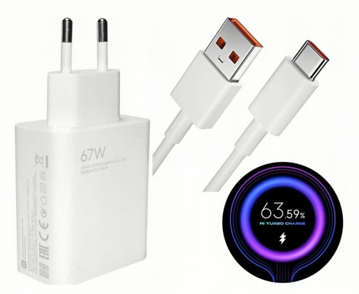 ŁADOWARKA DO XIAOMI TURBO 67 W KABLEM ŁADUJĄCYM 6A KABEL Z KABEL USB-C 1M
