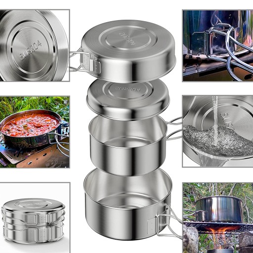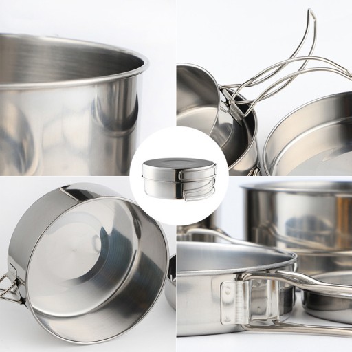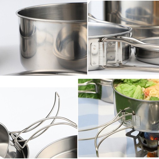 Kompaktowy zestaw naczyń kempingowych ze stali nierdzewnej, który można ustawiać jeden na drugim, ze składanymi uchwytami i kompatybilnymi rozmiarami. Zestawy do gotowania na świeżym powietrzu można układać jeden na drugim, aby zaoszczędzić miejsce. Ten zestaw garnków kempingowych pozwoli Ci zaoszczędzić mnóstwo miejsca w kuchni na świeżym powietrzu i podczas wędrówek z plecakiem.