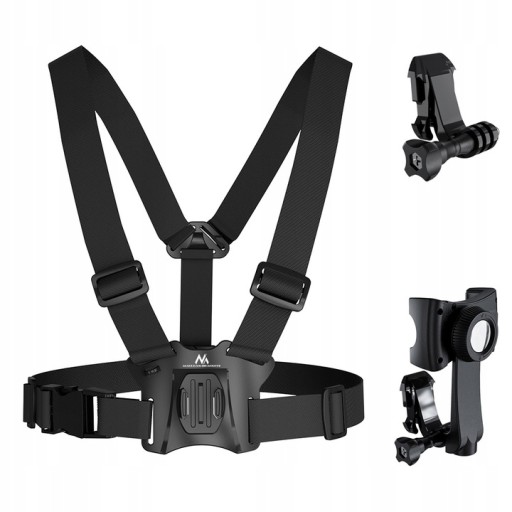 - Mocowanie do klatki piersiowej umożliwiające montaż kamery lub telefonu