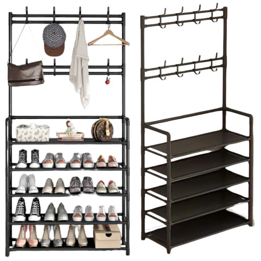 Duży wieszak z półkami, ułatwi Ci utrzymanie porządku z ubraniami, torebkami oraz butami. Na półkach możesz również umieścić kartoniki czy torebki! Idealnie sprawdzi się na korytarzu, w sypialni, garderobie jak i w łazience. Solidna konstrukcja pozwoli na przechowywanie dużej ilości ubrań, butów czy kosmetyków, a jego elegancki wygląd sprawi, że będzie on stylową ozdobą w Twoim domu. Dzięki wieszakom zyskujesz dodatkowe miejsce do przechowywania, możesz na nich zawiesić czapki, sweterki, szaliki czy torebki!