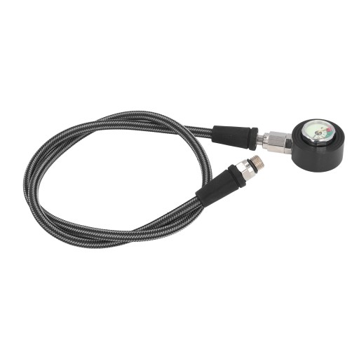 Cecha: 1. Trwały materiał: Wykonany z węża tkanego z włókna węglowego i stopu aluminium, manometr jest rygorystycznie testowany i certyfikowany, aby zapewnić nurkom doskonałą jakość i bezpieczeństwo.