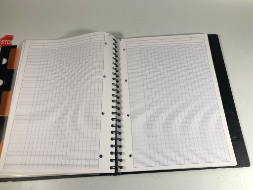 - 5 wpisywanych przekładek do organizacji zeszytu na spirali, okładka wykonana z PP w kolorze czarnym
