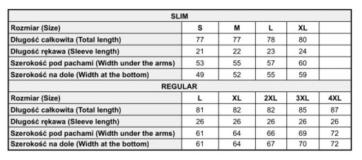 Wymiary koszuli: