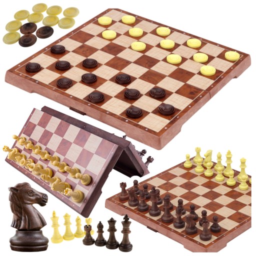 Odkryj klasyczną grę w nowoczesnym wydaniu z naszym zestawem 2W1: szachy magnetyczne i warcaby! Dwie niezwykłe gry logiczne w jednym produkcie. Nasz zestaw zawiera unikalną planszę o wymiarach 31 cm x 31 cm oraz komplet pionków do gry w szachy i warcaby. To idealna opcja dla każdego miłośnika gier logicznych!"