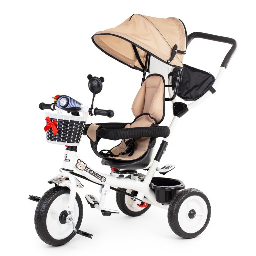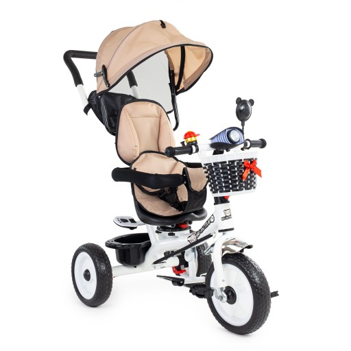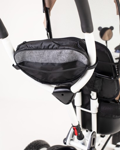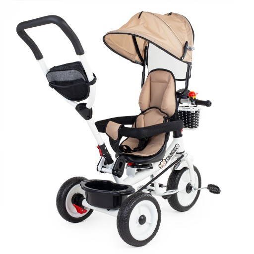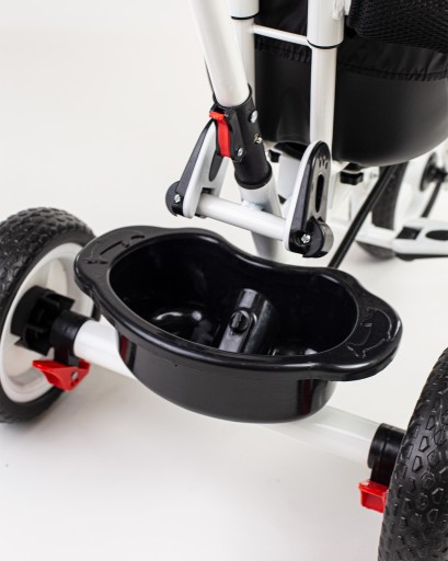 - komfortowy trójkołowiec, który może być używany na dwa sposoby: dziecko może być wożone przodem lub tyłem do kierunku jazdy i trzymać nogi na składanym podnóżku lub może samodzielnie jeździć