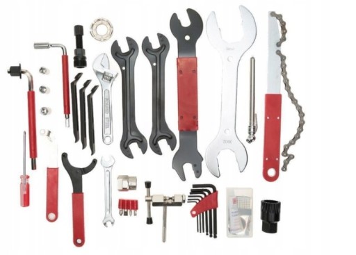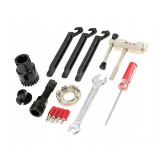 - Różnorodność narzędzi: Klucze, łyżki do opon, skuwacz łańcucha, klucze imbusowe, uniwersalne klucze do szprych i wiele innych.