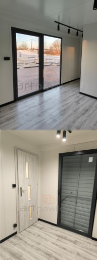 - Płyta warstwowa POLIURETANOWA PIR o gr 100mm i przenikalności termicznej 0,22W/m2k, dodatkowo płyta OSB i wykładzina PCV 0.3mm, listwy wykończeniowe