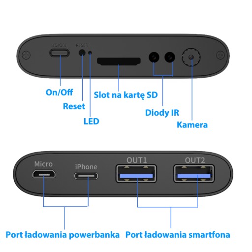 - Oferujemy najnowszy model kamery szpiegowskiej ukrytej w zgrabnym i niepozornie wyglądającym powerbanku, który pełni również funkcję przenośnej ładowarki.