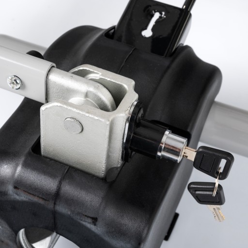 Platforma rowerowa Venus wyposażona jest w system zabezpieczeń przed kradzieżą. Bagażnik jest zabezpieczony za pomocą gałki z zamkiem na klucz, który jest dołączony w komplecie. Możesz podróżować bez obaw o bezpieczeństwo Twojego sprzętu, gdziekolwiek jesteś.