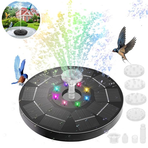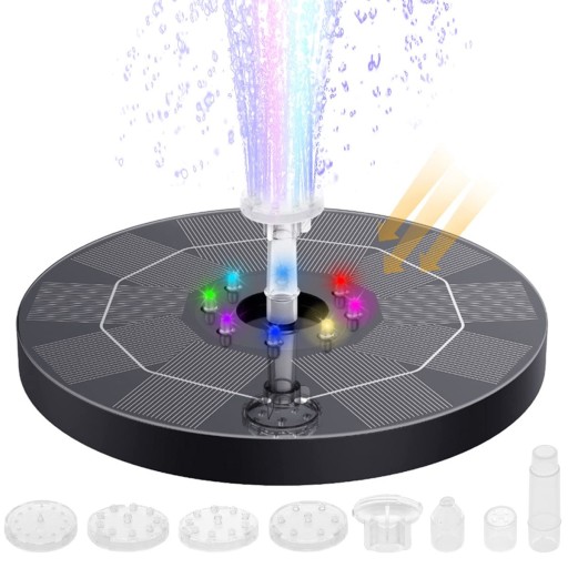 FONTANNA SOLARNA OGRODOWA PŁYWAJĄCA LED DO OCZKA STAWU POMPA FILTR 6 DYSZE