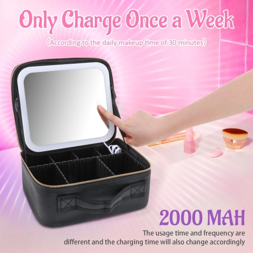 [Funkcja] Wbudowana ładowalna bateria litowa 2000 MAH, walizka do makijażu z podświetlanym lustrem, z podwójnymi metalowymi zamkami błyskawicznymi, z uchwytami do przenoszenia i wytrzymałymi paskami bagażowymi
