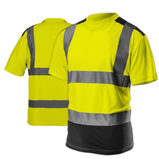 T-shirt roboczy ostrzegawczy NEO (nr ref. 81-730) o intensywnej widzialności to praktyczne rozwiązanie zwiększające bezpieczeństwo użytkownika, polegające na sygnalizowaniu jego obecności w każdych warunkach oświetlenia dziennego jak i w ciemności w sztucznym oświetleniu np. światłami pojazdów. Zastosowanie przewiewnego i lekkiego materiału zwiększa komfort użytkownika podczas upałów. Ciemne elementy umieszczono w miejscach narażonych na zabrudzenia. Gwarantem jakości jest certyfikat europejski oraz wykonanie zgodne z normą EN ISO 13688:2013. Zgodność z europejskimi standardami bezpieczeństwa zapewnia certyfikat CE. Marka NEO spełnia oczekiwania profesjonalistów.