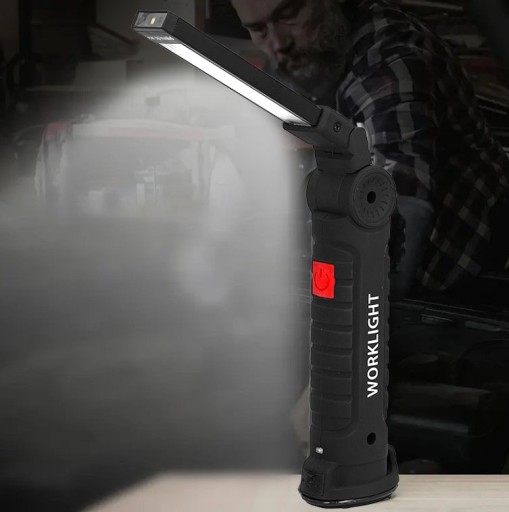 Latarka warsztatowa 5w1 COB W-51 to wszechstronne narzędzie, które umożliwia oświetlenie każdego miejsca dzięki ruchomej głowicy i magnesowi.