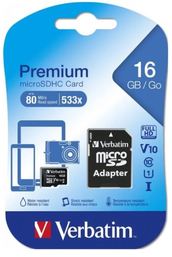 - Opis: Verbatim 16 GB SD Micro (SDHC) Class 10 With Adaptor