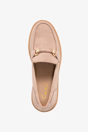 Beżowe mokasyny damskie model M24X6-BE zostały wykonane z wysokogatunkowego zamszu ekologicznego co gwarantuje doskonałą jakość i dopasowanie do stopy. Odkryj luksus na każdym kroku dzięki beżowym mokasynom. To wyjątkowe obuwie zostało zaprojektowane z myślą o tych, którzy pragną połączenia komfortu z efektownym wyglądem. Gwarantują nie tylko wyjątkowy design, ale także trwałość i wygodę noszenia. Podstawowym atutem tych mokasynów jest ich bieżnikowana platforma, która zapewnia doskonałą przyczepność do różnych powierzchni, gwarantując bezpieczeństwo nawet w trudnych warunkach. Niezależnie od tego, czy maszerujesz po mieście czy spacerujesz po parku, te mokasyny zapewnią Ci stabilność i pewność kroku. Subtelna ozdoba na cholewce, dodaje im uroku i elegancji. Ta delikatna dekoracja sprawia, że obuwie staje się idealnym dodatkiem do wielu stylizacji, od codziennych po bardziej formalne. Model wsuwany sprawia, że są one niezwykle praktyczne i łatwe w zakładaniu, co jest szczególnie ważne w przypadku tych dni, kiedy spieszymy się. Zaokrąglony czubek dodaje im klasyki i uniwersalności. Beżowe mokasyny to wyjątkowe połączenie designu, komfortu i funkcjonalności. Czy szukasz obuwia na specjalną okazję, czy po prostu chcesz dodać trochę ekstrawagancji do swojego codziennego stylu, te mokasyny z pewnością sprostają Twoim oczekiwaniom.