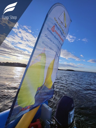 - Rozmiar całkowity flagi po obszyciu około 80x250 cm.