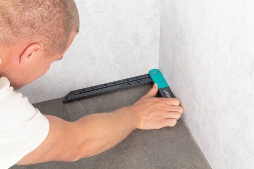 Profesjonalny zestaw do cięcia i montażu paneli winylowych i laminowanych zawierający gilotynę VLC 800 oraz kątownik z funkcją wyznaczania linii równoległych.