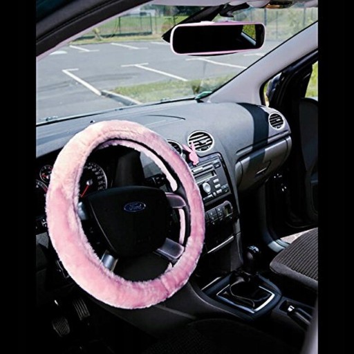 Ręcznie robiony pokrowiec na kierownicę. Różowy plusz.