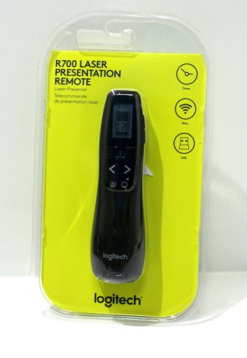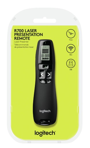 - Opis: Logitech Professional Presenter R700 R700, RF, 2.4 GHz, 30 m, AAA, LCD, USB