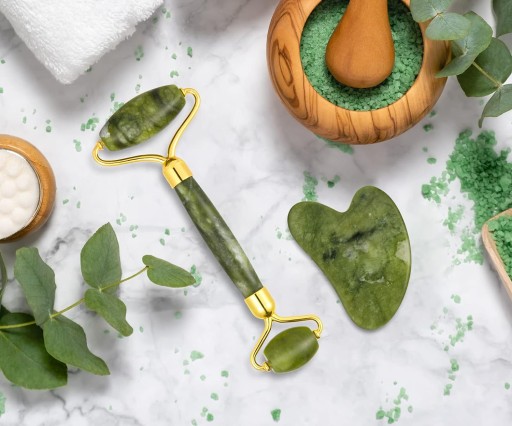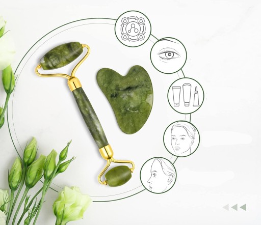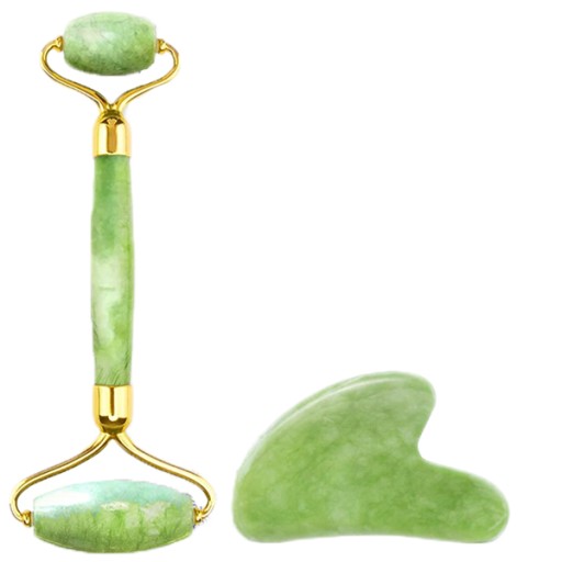 РОЛИКОВЫЙ МАССАЖЕР настоящий нефритовый камень для лица + набор ГУА ША