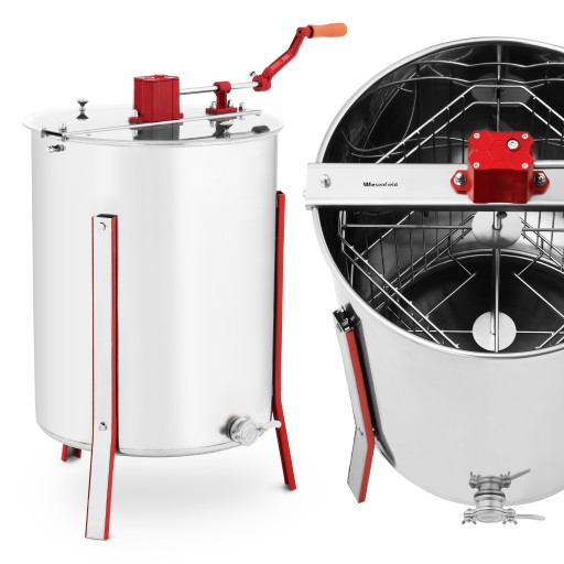 Wirówka może jednocześnie odwirowywać miód z 4 ramek. Urządzenie posiada kranik do łatwego dozowania miodu. Miodarka wykonana została ze stali nierdzewnej oraz wysokiej jakości tworzywa sztucznego. Przekładnię wykonano ze stali hartowanej. 3 nóżki zapewniają urządzeniu stabilność. Wirowanie odbywa się ręcznie za pomocą korby. Wnętrze jest dobrze widoczne dzięki przezroczystej pokrywie wykonanej z plexi.