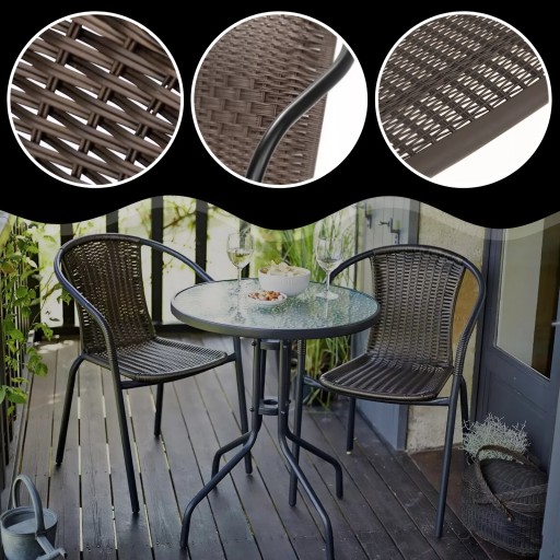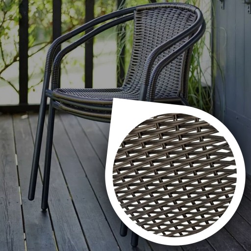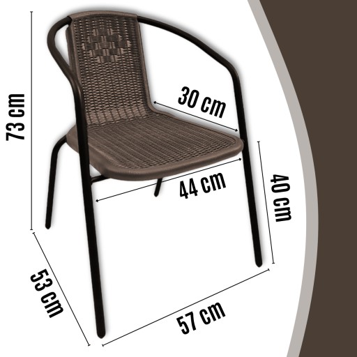 - Materiał: stelaż: stal; siedzisko: tworzywo sztuczne (plastik imtujący ratan)