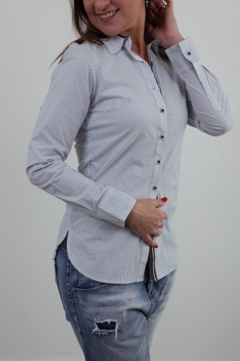 КЛАССИЧЕСКАЯ РУБАШКА В РЕБКУ С МАЛЕНЬКИМИ ТОЧКАМИ, размер 38