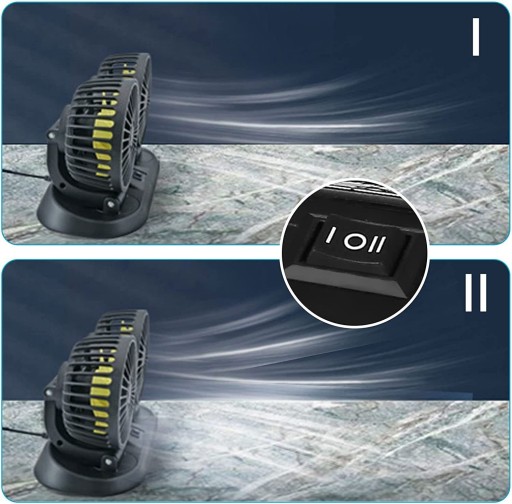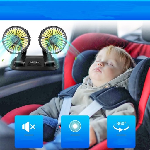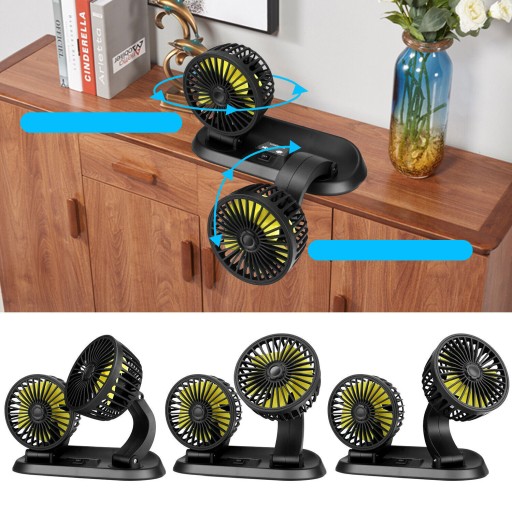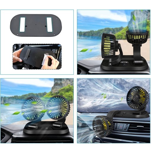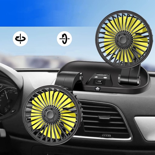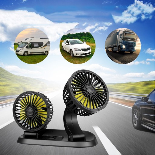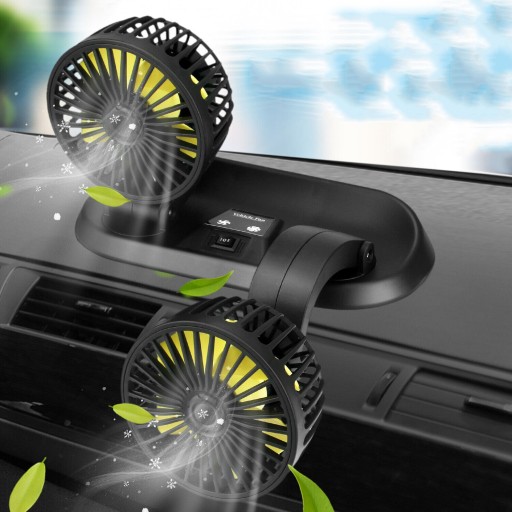 🚗【Wentylator samochodowy z podwójną głowicą】 Elektryczny wentylator samochodowy z możliwością obrotu o 360 stopni. Wystarczy podłączyć do gniazda zapalniczki 12 V i cieszyć się, w zestawie kabel zasilający (40 cali / 100 cm).