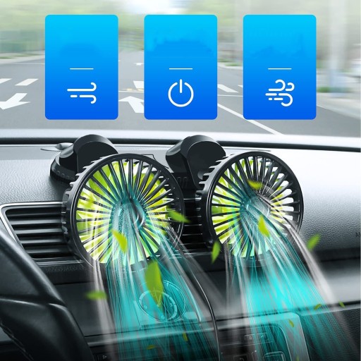 🚗【Szybko obniża temperaturę】 Dzięki dwóm prędkościom do wyboru można obracać dwie głowice wentylatora samochodowego, aby wiatr wiał w różnych kierunkach. Rozprasza ciepło, usuwa zapachy i kurz oraz utrzymuje świeże i chłodne powietrze.