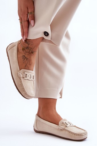 Damskie Modne Zamszowe Mokasyny Beżowe Rabell - rozmiar 38