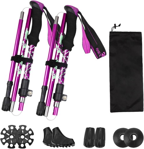 - Składane kijki trekkingowe z włókna węglowego zapewniają dodatkową stabilność, zmniejszają obciążenie nóg, chronią kolana i sprawiają, że wycieczki górskie są łatwiejsze i wygodniejsze.