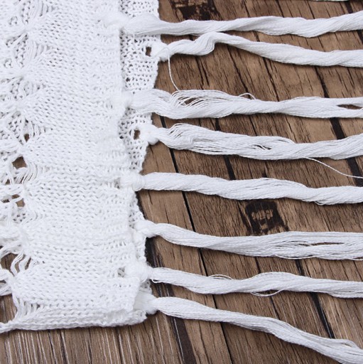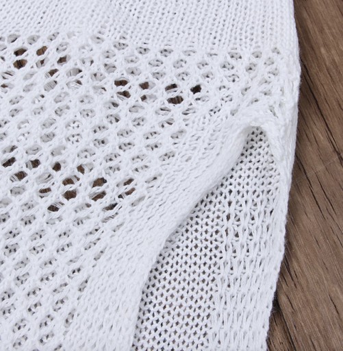 Prześliczna biała sukienka z ażurowym wzorem, wykonana z lekkiego, zwiewnego materiału. Posiada efektowne rozcięcie na dole. Sznureczek w pasie pozwala na idealne dopasowanie.