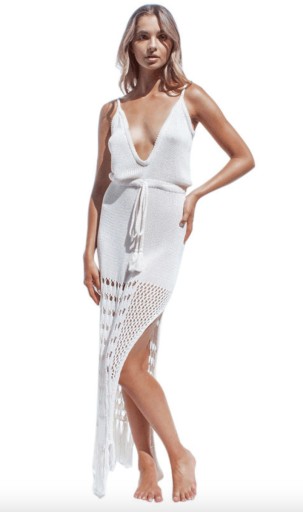Ażurowa sukienka plażowa maxi z rozcięciem w kolorze białym.