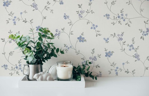 Цветочные обои в английском стиле, белые синие обои, имитация ткани