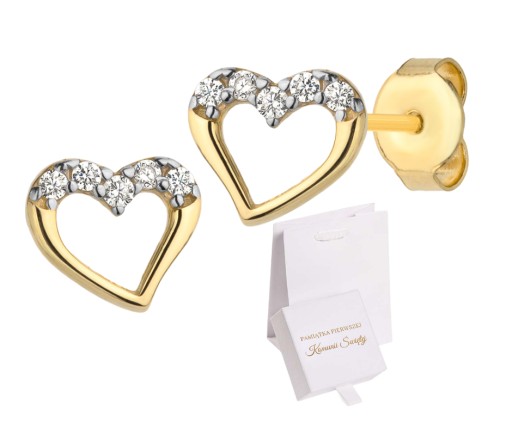 ✅ Piękne złote kolczyki dla dziewczynki, zostały wykonane ze złota próby 585, oprawione lśniącymi białymi cyrkoniami. Kolczyki posiadają bezpieczne zapięcie typu sztyft. Złote kolczyki doskonale sprawdzą się w roli pamiątki z okazji Roczku, Chrztu Świętego, Komunii lub innej wyjątkowej uroczystości. Złote kolczyki serduszka to, klasyczna ozdoba na każdą okazję. Jest to elegancki i uroczy model kolczyków, który pasuje do wielu stylizacji.