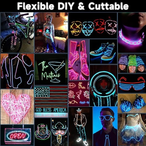 ⭐Elektroniczne Zabawki Błyskowe i Dodatki Użytkowe: Stwórz błyszczące zabawki, takie jak niebieskie okulary, obroże dla zwierząt, plecaki, kapelusze, torebki, odzież, buty oraz dekoracje rowerowe. Możesz również użyć go do ozdabiania telefonów komórkowych pasami błyskowymi, świetlnych pierścieni na rękę (obroży) i innych świetlnych prezentów rękodzielniczych.