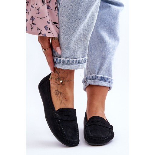 MOKASYNY DAMSKIE ZAMSZOWE CZARNE 38