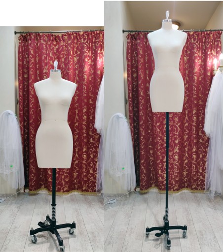 Profesjonalny manekin krawiecki damski z regulowaną wysokością torsu i szerokością ramion.