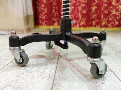 - Masywny i stabilny metalowy stojak z kółkami jezdnymi.