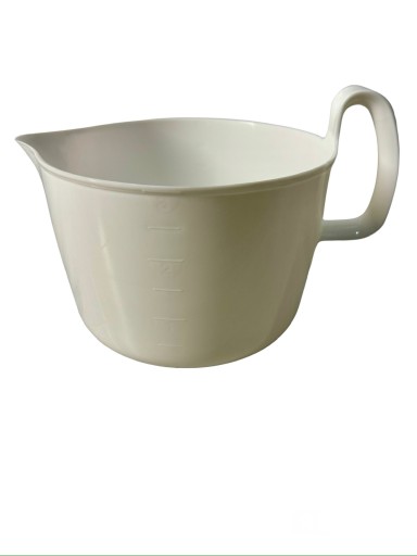 Praktyczny dzbanek plastikowy o pojemności 1l do wykorzystania idealnie pod Nasze sznurki do tworzenia super kolorowych Baniek mydlanych.