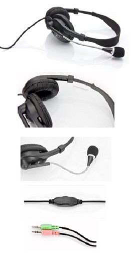 Proste, stereofoniczne słuchawki z mikrofonem i umieszczona na kablu regulacją głośności. Mikrofon jest zamocowany na bardzo elastycznym, otoczonym metalową osnową pałąku. Zapewnia to łatwość dostosowania położenia mikrofonu do indywidualnych potrzeb oraz trwałe utrzymywanie jego pozycji. Pałąk nagłowny z obustronną regulacją wielkości. Poduszki uszne wyścielone miłym w dotyku materiałem skóropodobnym. Posiadają płynna regulację głośności i są kompatybilne ze wszystkimi wiodącymi kartami dźwiękowymi oraz urządzeniami audio. Doskonała jakość dźwięku wspaniale sprawdza się w czasie gier, słuchania muzyki, oglądania filmów czy rozmów prowadzonych przez komunikatory internetowe.