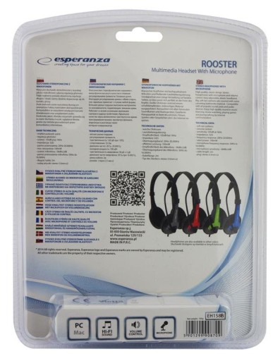 ESPERANZA SŁUCHAWKI Z MIKROFONEM ROOSTER NIEBIESK